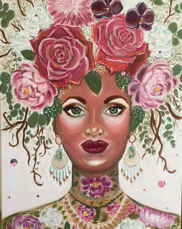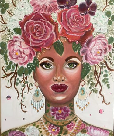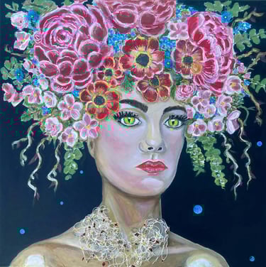 Je crée pour réparer. Dans mon atelier, l’humain et le végétal s’unissent pour donner vie à des Portraits Hybrides. Ici, chaque chevelure devient un jardin et chaque trésor marin se métamorphose en parure sacrée. Bienvenue dans un univers où l’harmonie n’est plus un idéal, mais une métamorphose.