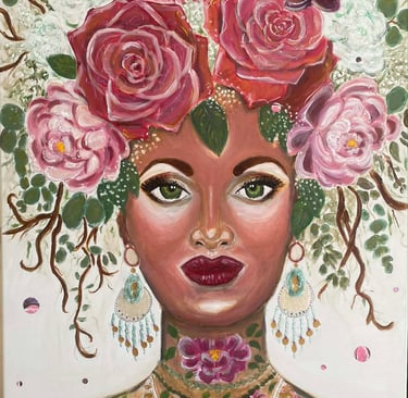 Dans ma démarche de création contemporaine, je cherche sans cesse à créer un trait d’union entre l’humain et le végétal. Ce prénom est devenu le pont idéal pour illustrer cette connexion. Il n’est pas seulement un nom, il est une identité qui lie le visage peint aux fleurs et aux éléments marins qui l'entourent, comme la corde de pêche de Planguenoual ou le verre poli.